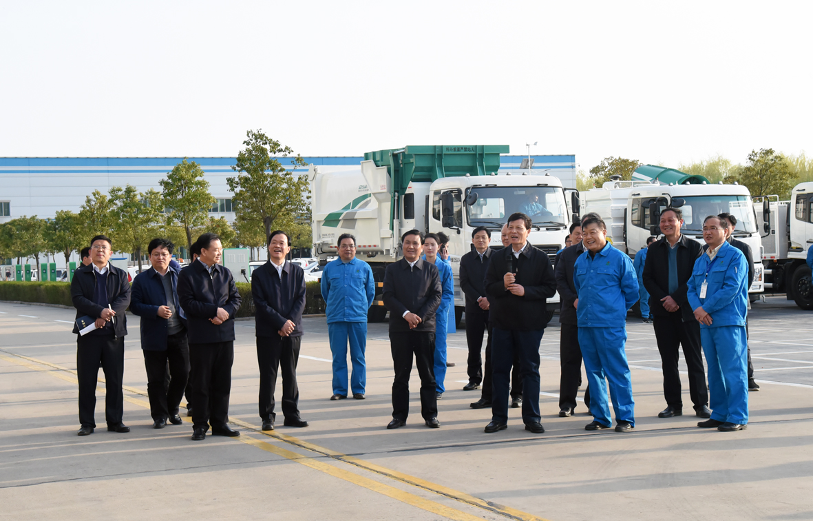 看到森源集团拥有完全自主知识产权的移动式水平垃圾压缩中转站、多功能抑尘车、高压清洗车等环卫系列产品时,谢书记很感兴趣,并特意观看了移动式垃圾中转站的现场自装卸演示。得知该产品是与欧美发达国家同步开发,技术水平达到国际前列时,谢书记表示:“森源的产品种类多,技术实力强,比如这个垃圾中转站就非常值得推广。”